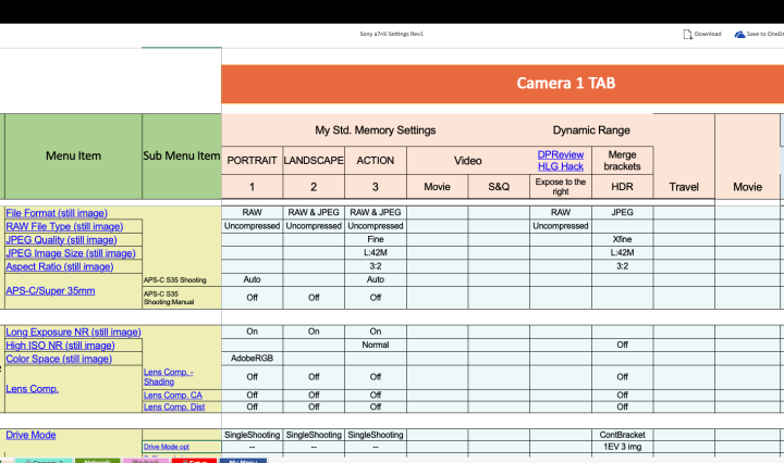 A7riii Settings Spreadsheet